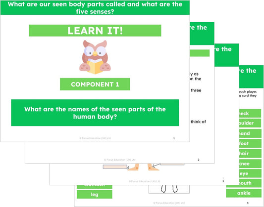 Science Y1: What are our seen body parts called and what are the five senses?