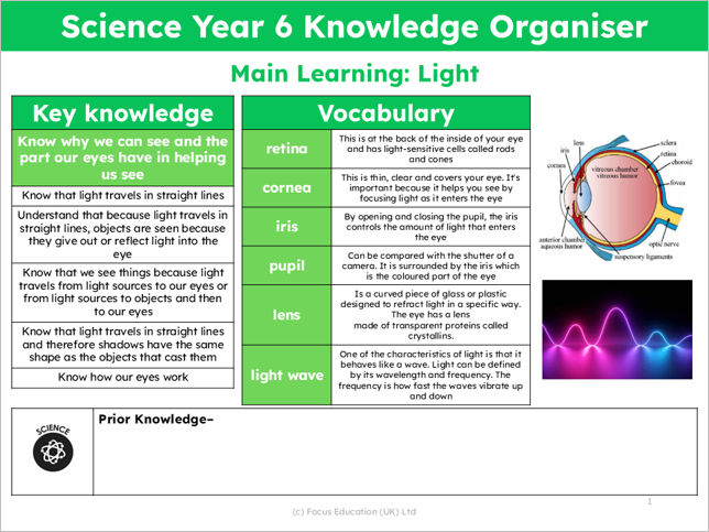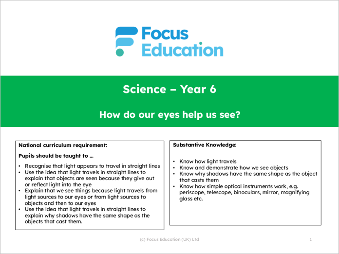 Download the free overview here Science Y6: How do our eyes help us see?